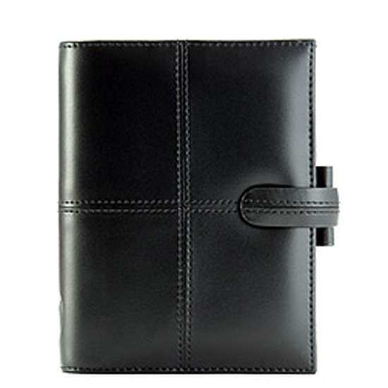 The distinctive styling and polished Italian leather of the Classic Black Organizer have made it our most popular organizer. Four lightly padded stitched panels make up the front cover. A stitched closure with a hidden snap and edge stitching all the way around pull together a smart look from start to finish. A flat, zippered pocket with a shiny silver pull offers a convenient spot for small items and papers.