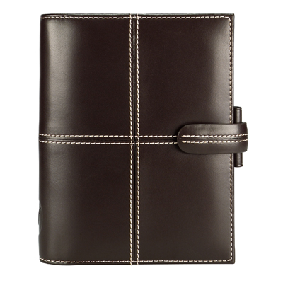 The distinctive styling and polished Italian leather of the Classic Chocolate Organizer have made it our most popular organizer. Four lightly padded stitched panels make up the front cover. A stitched closure with a hidden snap and edge stitching all the way around pull together a smart look from start to finish. A flat, zippered pocket with a shiny silver pull offers a convenient spot for small items and papers.